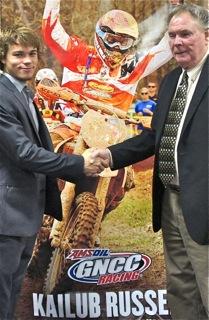 At their December 2, 2013 Yadkin County Board of Commissioners Meeting, the Board adopted a resolution honoring Kailub Russell, a Yadkin County resident, as the 2013 Grand National Cross Country Champion. Kailub Russell competed in all 13 races of the 2013 GNCC XC1 Pro Championship series and won 7 of the races. The races are off road races that are over 3 hours long so the competitors are top athletes that possess exceptional skills and fitness. Chairman of the Board Kevin Austin stated, “I know how much work and dedication go into winning a championship due to having been involved in the sport for many years.”