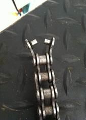 An eventful weekend it was, very eventful. I pulled a really good start taking the holeshot. I tried pulling away as much as I could but I wanted to ride conservative. I was making little mistakes through the so called “mud”, balancing the bike, standing up and trying to stay up on two wheels. The course was a little muddy but it was really greasy in some places. In the other spots it was nice hard sand that was just awesome. Going through the first lap I got through the worst greasy section fine. I’m feeling good and I have a good rhythm going. There was one section with about 5 whoops and at the end there was a deep/short hole with soapy mud. In that section on the first lap I wheel tapped the first 4 whoops and I put my front end down to skim the last one because of an upcoming corner. My front end dropped into that deep/short hole and cartwheeling I went. As I’m rolling on the ground (still moving) I’m moving along right with my bike. When I come to a stop the bike also comes to a stop and falls over on top of me. I push it off but I grabbed the pipe, my fingers are burning. I get up and get on my bike, I notice there is no fender, my Enduro Engineering bark buster bent up over my throttle tube, and my bars were all the way to the stop and my front wheel was straight. I rode over to a tree, hit it and straighten it out as much as I could. As I’m riding I figured out my visor was broke. I’m still in first after all this but I can hear them coming. It’s really hard riding with your bars not straight. Finally I get used to it and I felt like I was making up time again. Second lap I fell even better, I know were all the good lines are now and I am plucking away. I get to this whooped out section (different section then before) and I’m going through on the back fender. I clicked up a gear and it seemed that the bike missed a shift into neutral. I shifted up and rev the motor and it still didn’t go. I look down and there is no chain. I pull off the track in the middle of the woods and the chain was hanging from the bottom chain guard by the rear sprocket. I pick it up and see if I can maybe put it back together and cruise to the pits. But this is how my chain broke.