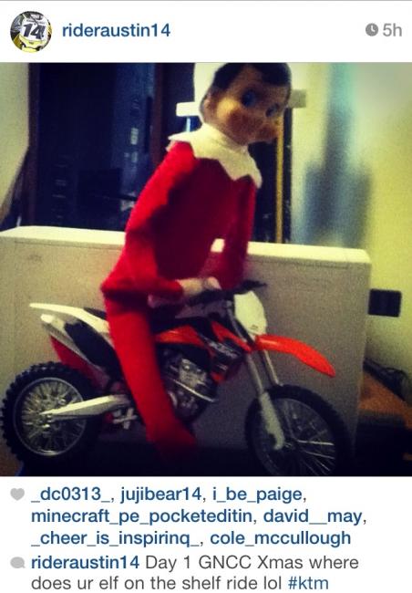 So this year we decided to do a little fun activity for the holiday season via social media, titled GNCC’s 7 days of Xmas Cheer. Basically, for the week leading up to Christmas, we’re asking people to share specific holiday/racing photos each day using the hashtag #gnccxmas so we can track all the entries and give away a family 4-pack of GNCC gate passes for 2014 after each day.