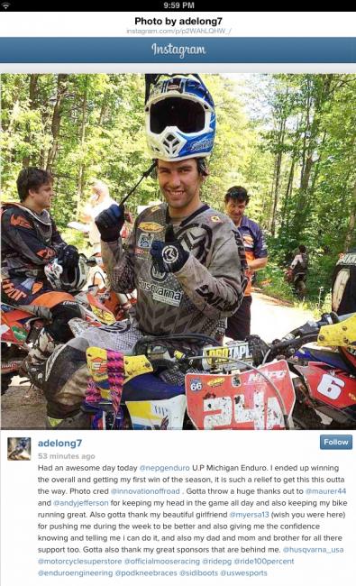 Factory Husqvarna and Motorcycle Superstore's Andrew DeLong claimed his first AMA Enduro win of the season at the Loose Moose National Enduro held this weekend in Marquette, MI.