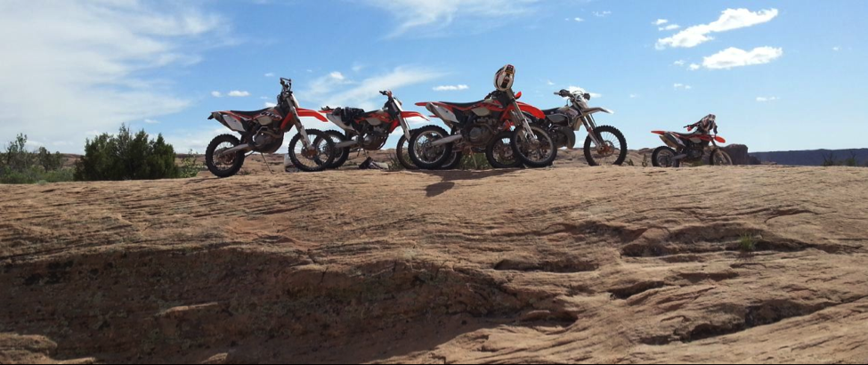 Patrick Garrahan, a KTM rep, joined us. Tad and Ryan from the Rocky Mountain ATV/MC dealership (KTM/Kawasaki) in Washington, UT came and brought the bikes we were about to have the time of our lives on. And finally, Justin and Eric, our trail bosses from the Rocky Mountain ATV/MC headquarters, were there to lead the ride.