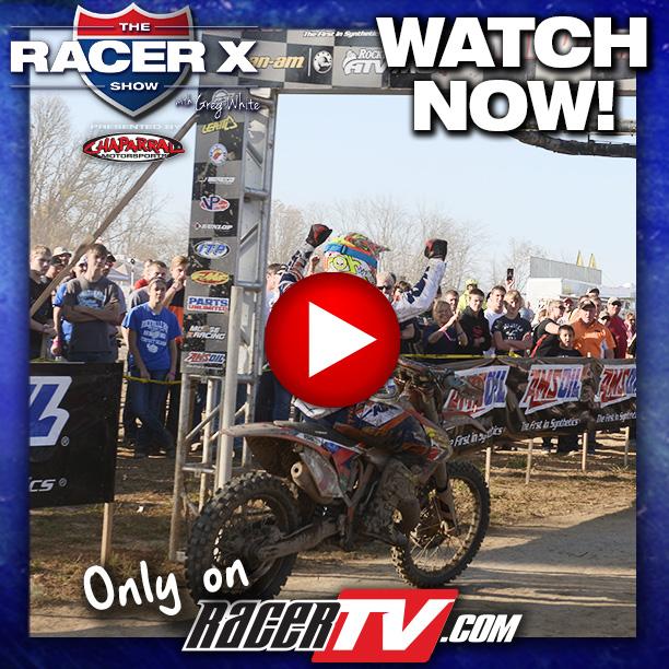 This week on The Racer X Show we have highlights of the motorcycle racing at the AMSOIL Ironman GNCC Finale, Endurocross from Everett, Washington and an interview with Monster Energy Kawasaki’s Davi Millsaps. Plus we have news on MotoGP and the 2014 ISDE U.S. Trophy Team. Check it out now only on RacerTV.com.