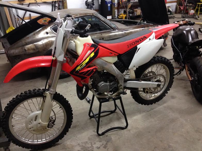 2002 Honda CR125 / Red/White - No numbers (White hand guards, white IMS fuel cell and clear gas tank, kill switch had been removed) VIN: JH2JE01302M400626 owner: Bobby Ousley