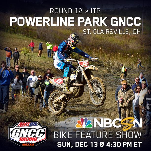 Don’t miss the GNCC Bike feature show on NBCSN this Sunday, December 13 at 4:30 p.m. ET from the ITP Powerline Park, Round 12 of the AMSOIL Grand National Cross Country Series presented by Maxxis.