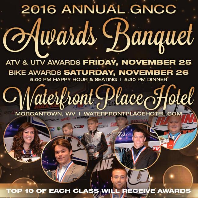 GNCC Racing Nation, don’t forget to book your room TODAY for the banquets that will be held on Friday, November 25 (ATV Night) and Saturday, November 26 (Bike Night). Room reservations must be made by 5PM Friday, November 4, 2016 to receive GROUP DISCOUNT of $120 per room ($159 King Suite). After tomorrow GNCC’s block of rooms will be released and the prices will increase. As of right now the regular retail rate is set at $134. That could stay the same or that could be adjusted based on overall availability.