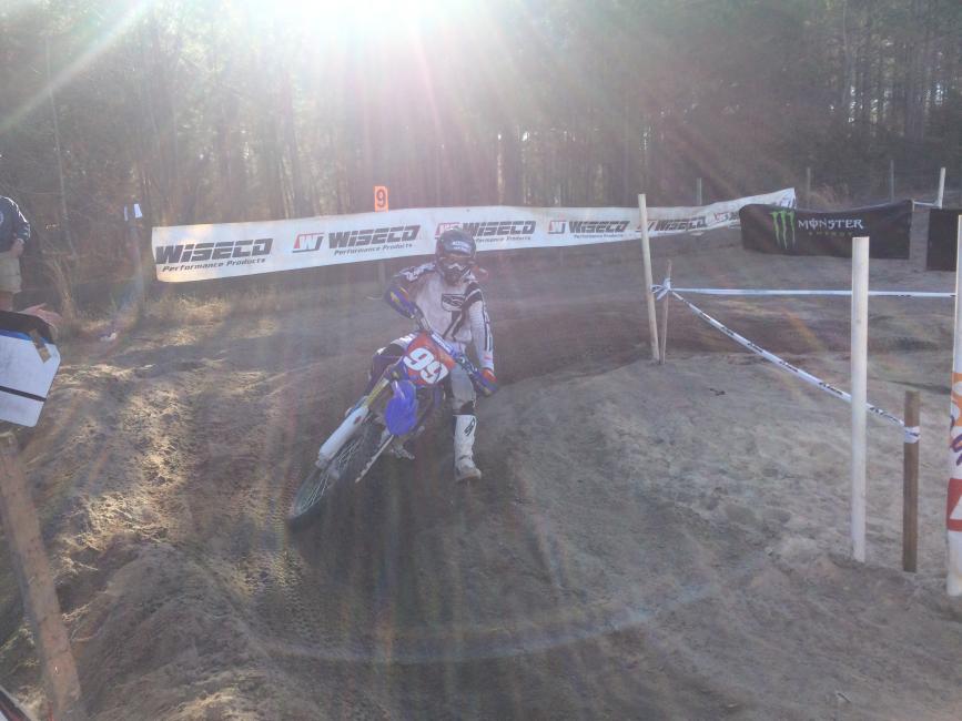 First race on the YZ125 which will be my race bike for the XC3 class in the GNCCs. . I was suffering from the cold/flu that has been going around and probably would have been better off in bed but I wanted to get some race time on the Factory Connection suspension and get some data on fuel mileage. I got a good start and was 3rd into the first corner despite lining up along side a bunch of 450s. The track was half hard pack, half sandy, quite dry and dusty, making vision a challenge with the sun low in the sky.
