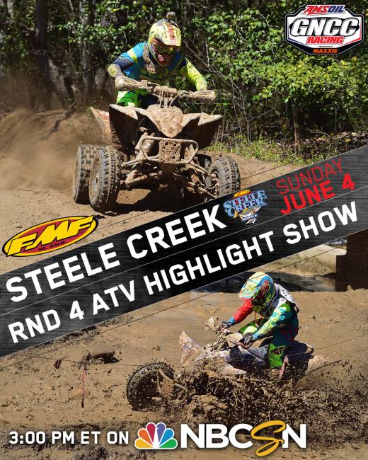 Don’t miss the GNCC ATV Highlight show on NBCSN Sunday, June 4 at 3:00 p.m. ET from the FMF Steele Creek, Round 4 of the 2017 AMSOIL Grand National Cross Country Series presented by Maxxis.