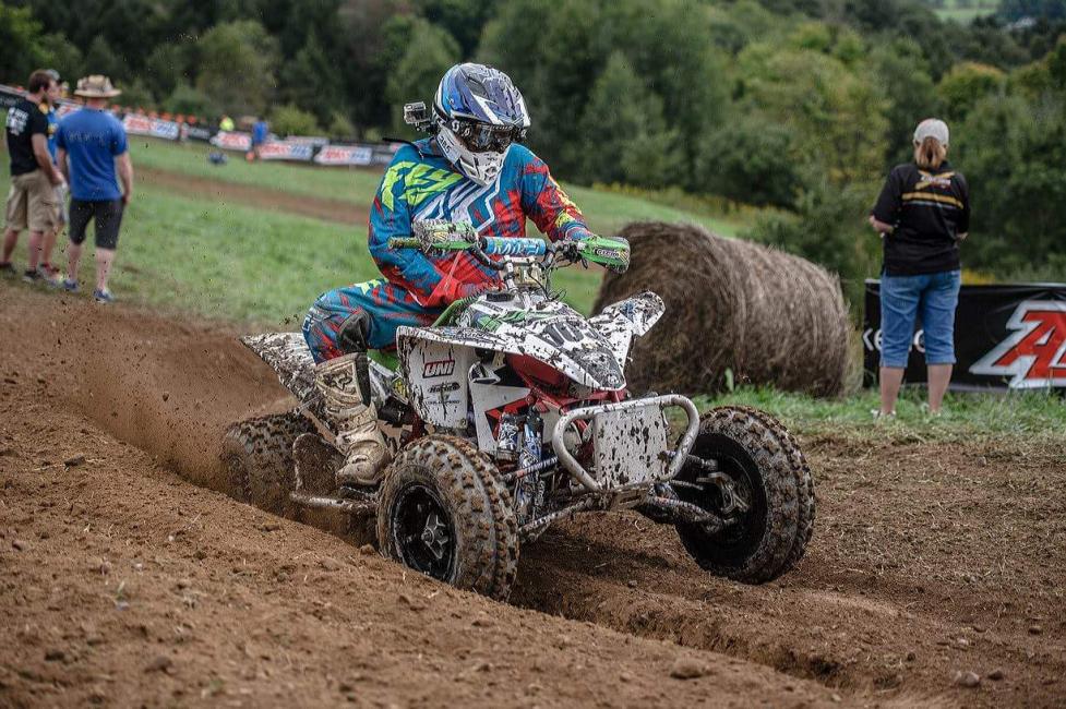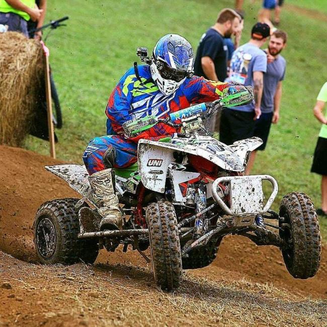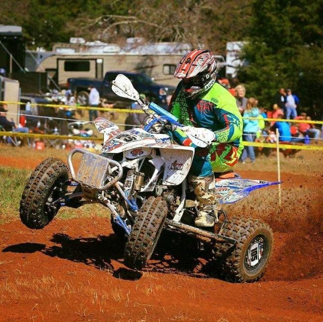 Nate Riggins is a 33-year-old from Chesapeake, Virginia. He competes in the 30+ C ATV class, on a heavily modified 2006 Yamaha YZ 450cc. Why heavily modified? Because following a street bike accident almost a decade ago, Nate lost the use of his right arm. He actually did not start racing until after his injury, and is a true enthusiast, riding anything and everything he can get his hand on! While Nate was unable to compete for most of this year, he ran a majority of the series in 2016 and plans to return for the full 2018 season.