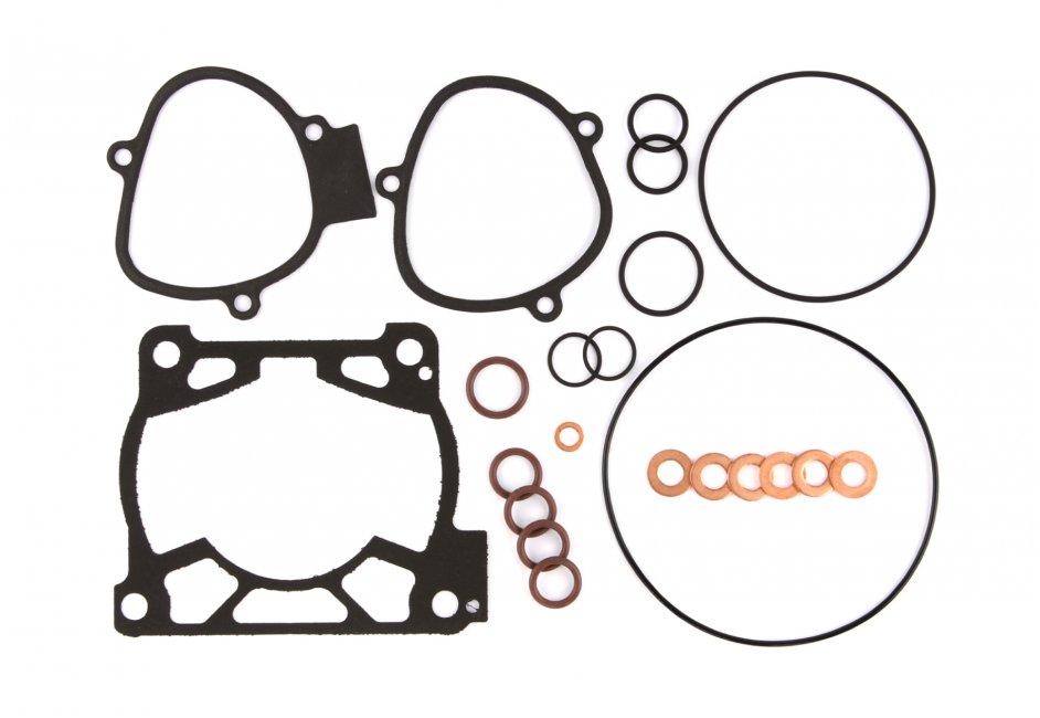 These new Top End Kits contain all the necessary components to install a new piston, or cylinder in the 2017-2018 KTM and Husqvarna 250 and 300 2-stroke models. They feature FKM (viton) Cylinder head O-rings, AFM(Aluminum Foam Material) and Rubber Coated Steel cylinder base gaskets in all stock replacement thicknesses. Included in the kit are AFM Power Valve Gaskets, Control Valve O-rings, Exhaust O-rings, and Head Crush Washers.