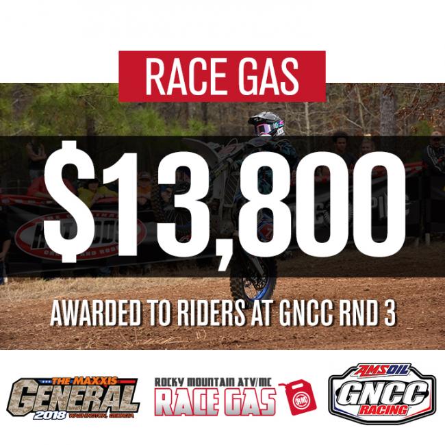 Pre-entering for GNCC Racing and using registering on the FastTrack, you’ll receive $20 in Race Gas Cash credits on RockyMountainATVMC.com. (One cash credit per rider per event) Why the change? To get you your cash quicker* and to make it easier to use on the Rocky Mountain ATV/MC website or when calling in. When Race Gas Cash credits are earned, you’ll receive an email letting you know how much cash has been put into your account, what event you received it for and the expiration of that credit. If you don’t have an account with Rocky Mountain ATV/MC, you’ll have the opportunity to do so through the email that is sent to you.