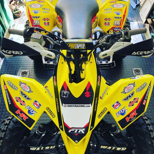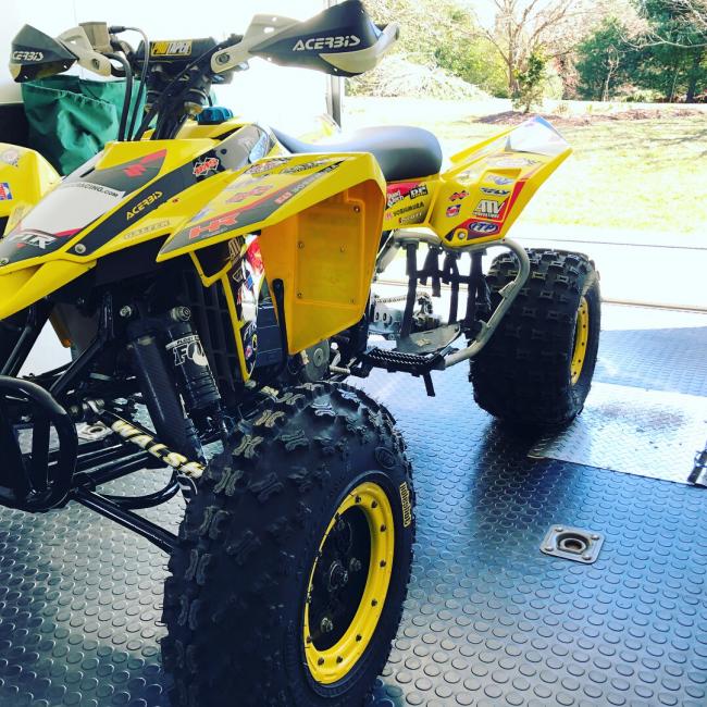 - Aftermarket: Walsh XC1 a-arms, Fox float evol front, Fox podium piggyback reservoir, DWT beadlocks all around, ITP tires quadcross rear, GNCC front, RPM brake hub, Dominator 2 axle, ProTaper sprockets front & rear, DID chain, DP brakes pads, Moose parking brake block-off, full chassis & swingarm skids (not pictured), Z400 rear hubs, Blingstar heel guards, IMS foot pegs, Rath XC bumper, Houser grab bar, Yoshimura rs-5 exhaust (fresh packing by yosh), Yoshimura cherry bomb, Yoshimura start button, CV4 hoses, RMZ250 radiator shrouds, Twin Air filter, ProTaper bars & grips, Acerbis handguards, MotionPro twist throttle (have a OEM thumb throttle if desired), Quadtech beak.