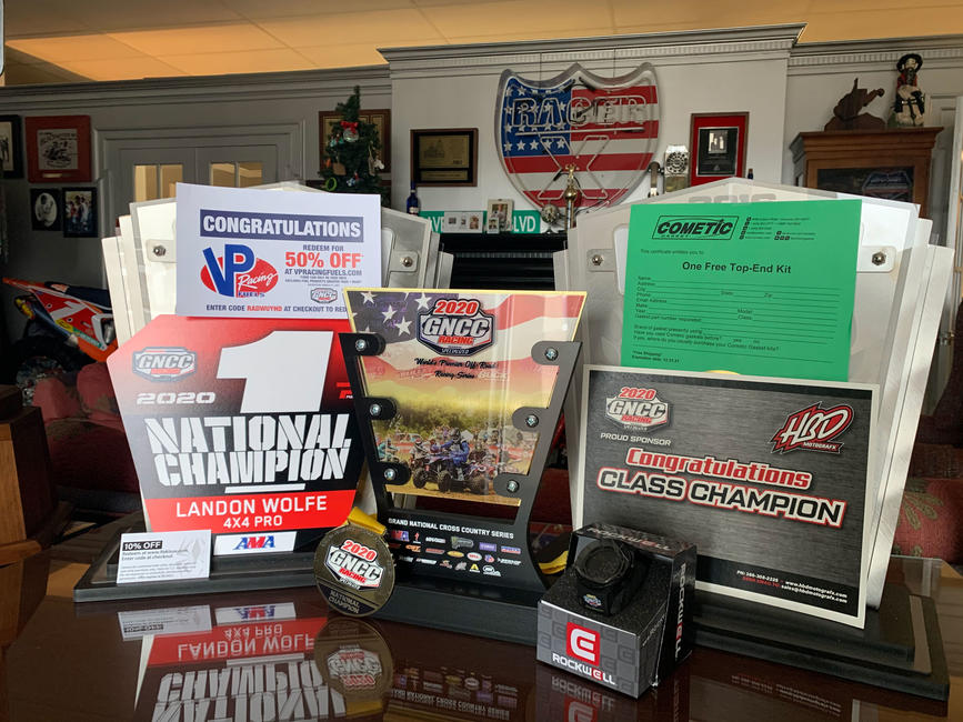 National Champion boxes are beginning to be prepared. These boxes will include your trophy, #1 plate from GNCC (AMA is separate), medal, contingency items and certificates. The gear, boots and championship jackets will be available to be picked up at the first couple of rounds.