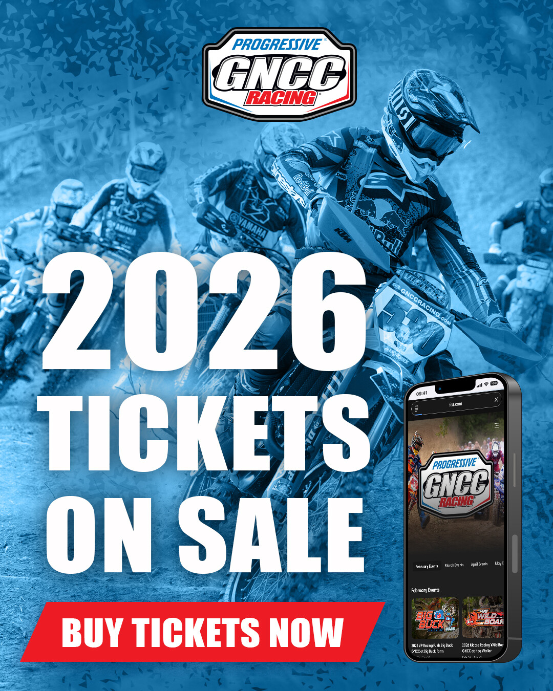 MORGANTOWN, W.Va. (January 29, 2026) – The Progressive Grand National Cross Country Series (GNCC), an AMA National Championship, is happy to announce that online ticket sales are now available for all 13 rounds of the 2026 season.